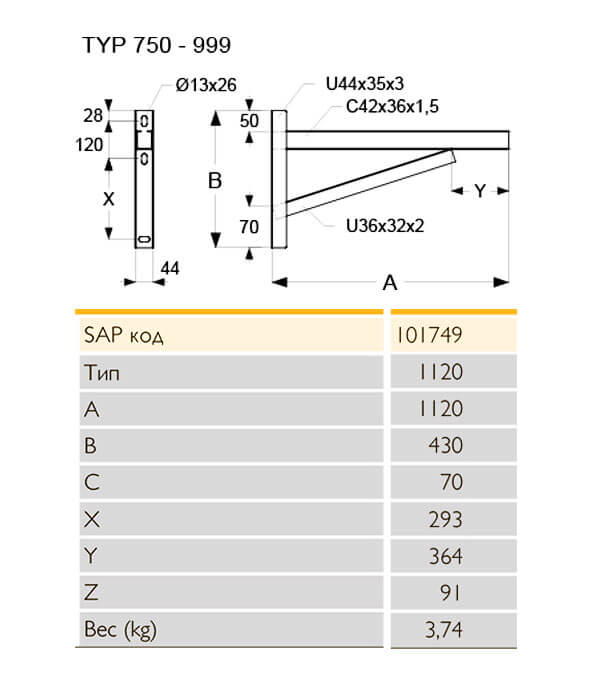 Элемент дымохода из нержавеющей стали Schiedel ICS - опорная консоль, длиной 1120 мм. Опорная консоль дымохода предназначена для крепления основания дымохода при настенном монтаже.