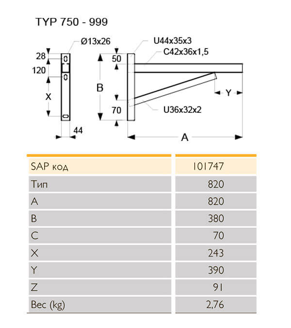 Опорная консоль дымохода Schiedel ICS - 820 мм