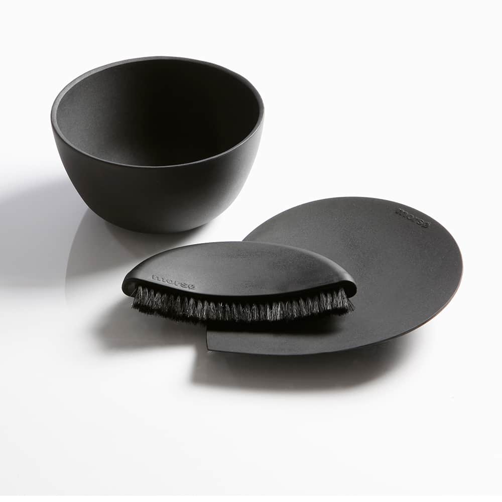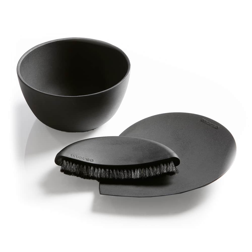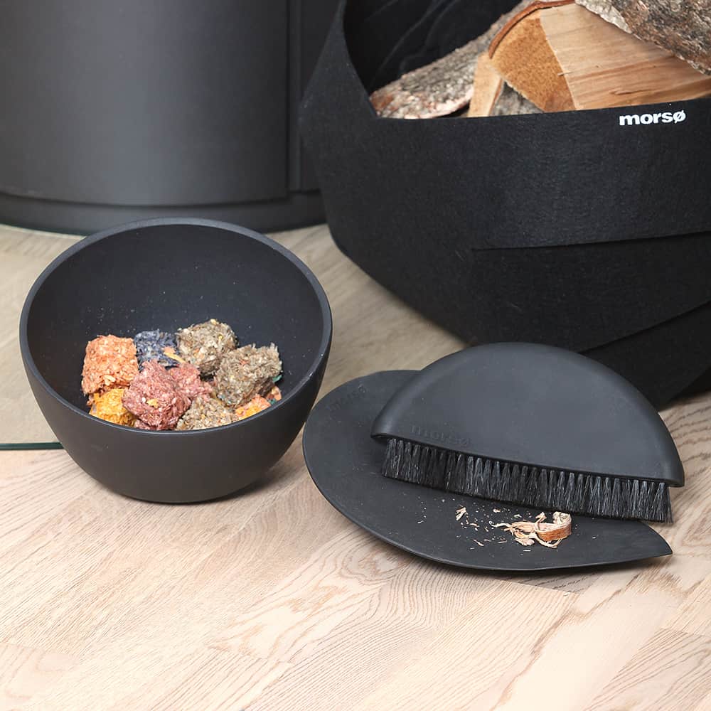 Каминный набор Morsø "CURVA" – аксессуар для очистки печи или камина, состоит из трех предметов: щетки, гибкого совка и емкости для мусора.