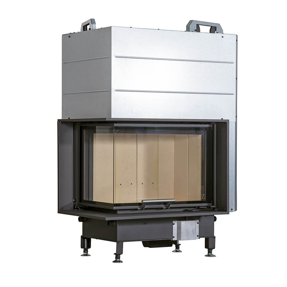 Топка для камина на дровах Scan 5004 FL левосторонняя, с фронтальным и дополнительным стеклом с левой стороны, тепловая мощность 8 кВт, отапливает помещения дома до 155 м2.