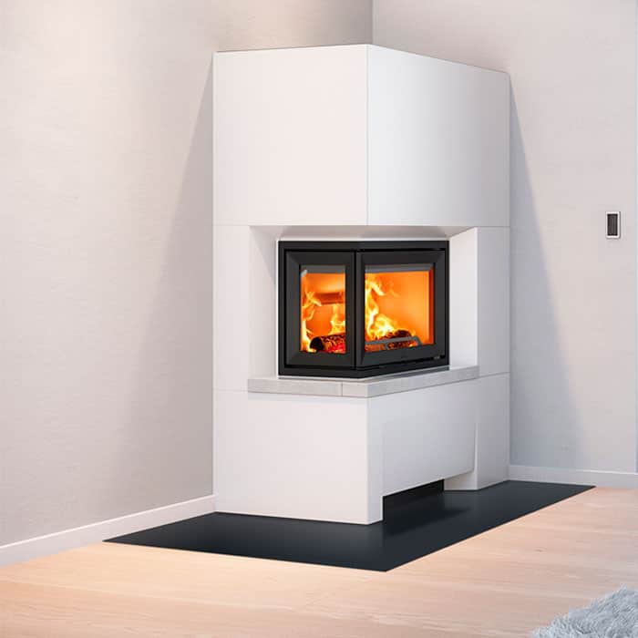Jøtul S 72 – это новая облицовка для каминной топки Jotul F 520 FL, с передним и левым боковым стеклом, выполнена из бетона, предназначенная для установки в углу помещения.