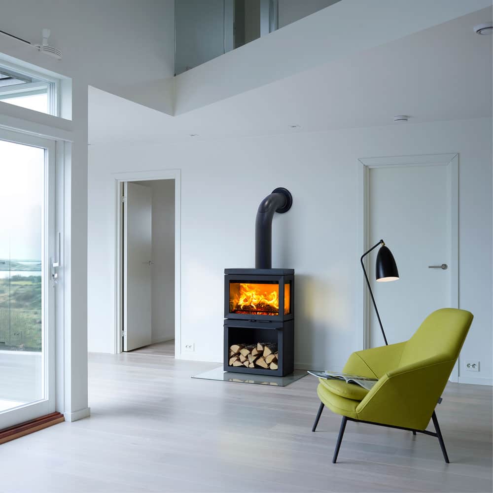 Печь-камин длительного горения JОTUL F 520 BP, с тремя стеклами, большим переднем и двумя боковыми, номинальная мощность печи 7 кВт, рассчитана на отопление помещений дома площадью до 140 м2.