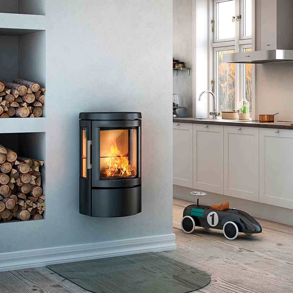 С серией HWAM 2600 датские дизайнеры Хенрик Сориг и Тобиас Якобсен создали еще одну прекрасную серию печей, величественную по элегантности, но при этом небольших по размеру. Система промывки воздухом поддерживает чистоту стекла и гарантирует, что завораживающим огнем можно будет наслаждаться через изогнутое стекло чугунной двери.