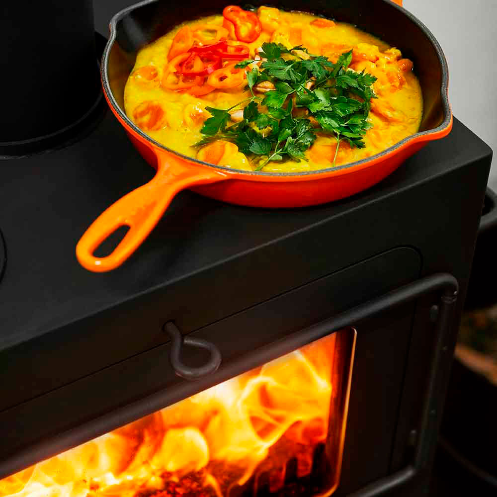 Классическая и ностальгическая дровяная печь сочетается с современными технологиями, создавая прекрасную гармонию.