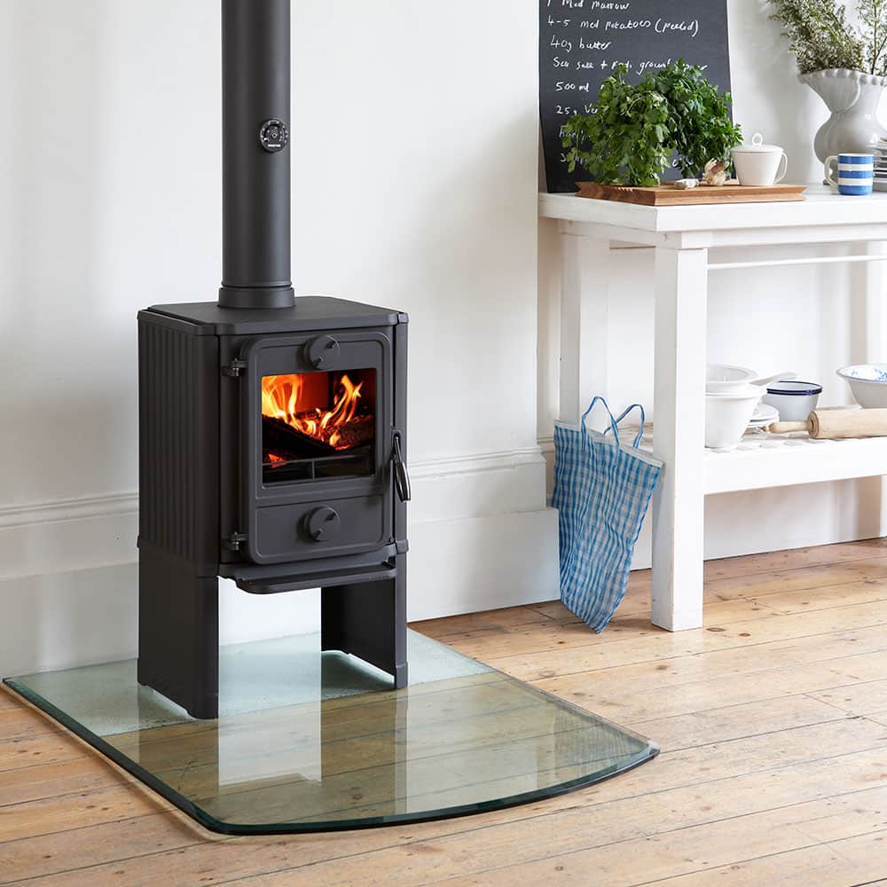 Чугунная топка камина оборудована колосниковой решеткой и зольным ящиком для сбора и быстрой утилизации золы при очистке. Система сгорания Morsø включает систему обдува, в результате которого отсекаются частицы копоти, обеспечивается чистота стекла в процессе горения.