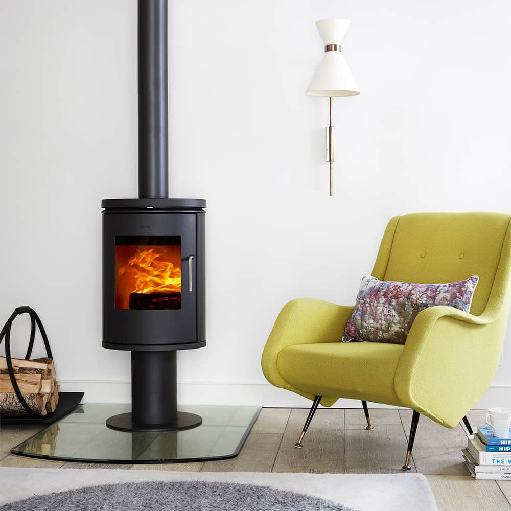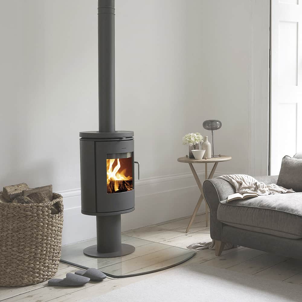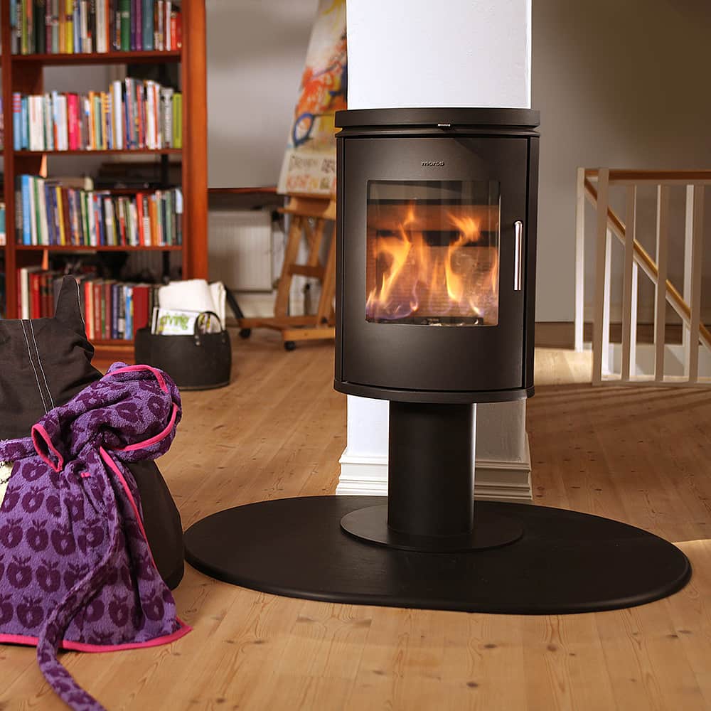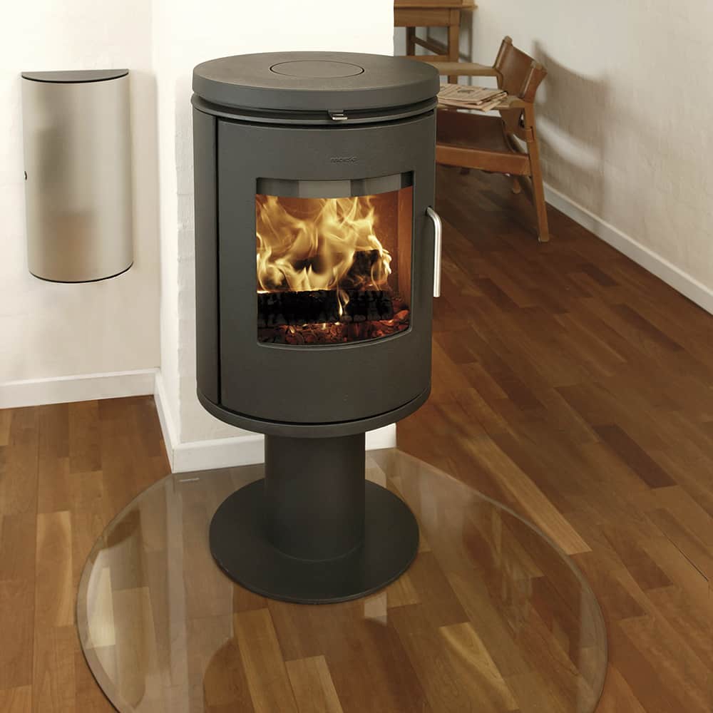 Современный камин Morso 6148 на пьедестале, тепловая мощность от 3 до 6 кВт, обогрев дома площадью 45 - 90 м2.