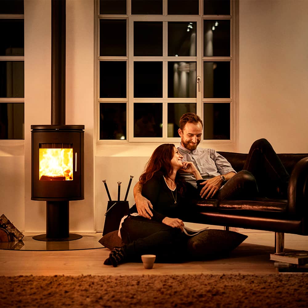 Печь камин Morso 6148 круглой формы, имеет большое каминное стекло, которое в процессе работы печи омывается потоками горячего воздуха и всегда остается чистым.