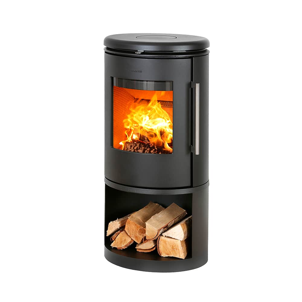 Топка камина Morso 6843 установлена на основании, в нижней части которого имеется открытая емкость для складирования дров. Печь имеет съемную ручку, которая в процессе работы печи не нагревается, всегда остается прохладной. Каминная дверца самозакрывающаяся.