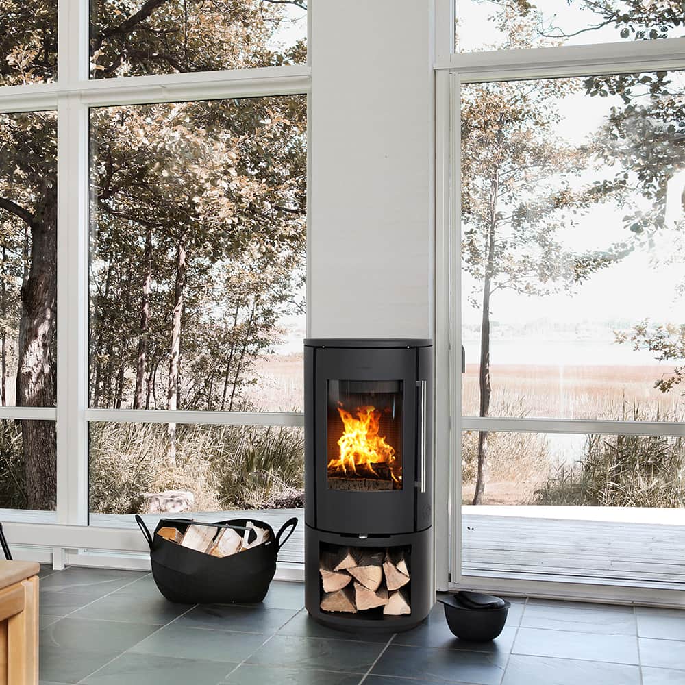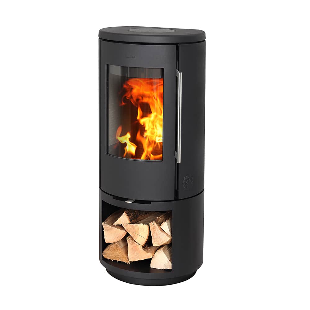 Камин Morso 7343 имеет простую, элегантную форму и выполнен в современном стиле. Топка печи установлена на основе, и имеет в основании отсек для хранения дров.