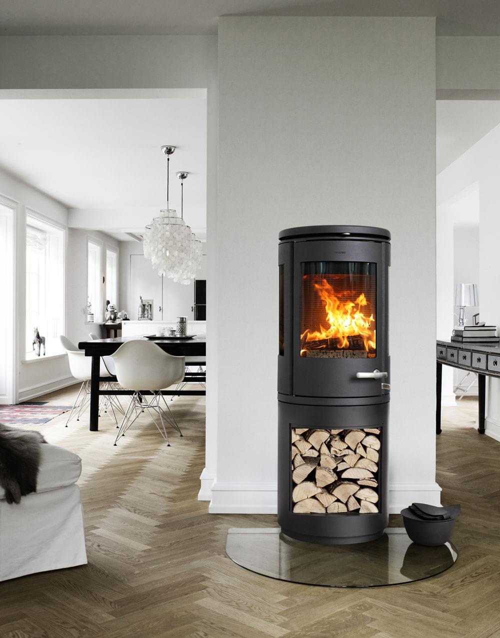 Топка печи Morso 7993 установлена на высоком основании с отсеком для хранения дров. Топка печи имеет большое фронтальное стекло и два боковых, для обзора пламени под углом 180 градусов. Воздушная очистка печи стекла препятствует оседанию сажи и копоти на стеклах печи камина, и в результате стекла всегда остается чистым без оседания сажи.