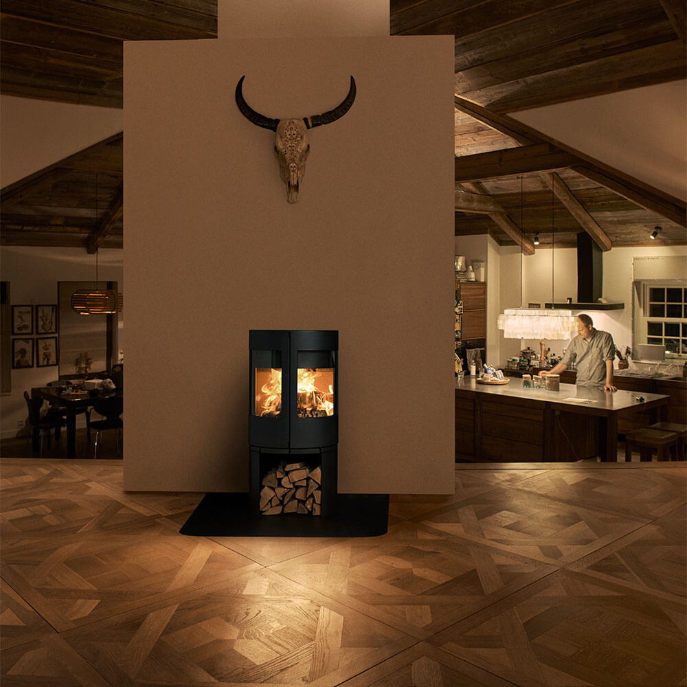 Чугунная печь Morso 6643 в скандинавском дизайне эллиптической формы с двумя дверцами, максимально увеличивающими площадь стекла. Это обеспечивает захватывающий 180-градусный обзор пламени. Прекрасный вид на пламя еще больше подчеркивается золотистым тонированным вермикулитом, который, подобно внутреннему фону печей, украшен легендарной символом Морсо – белкой на перегородке.