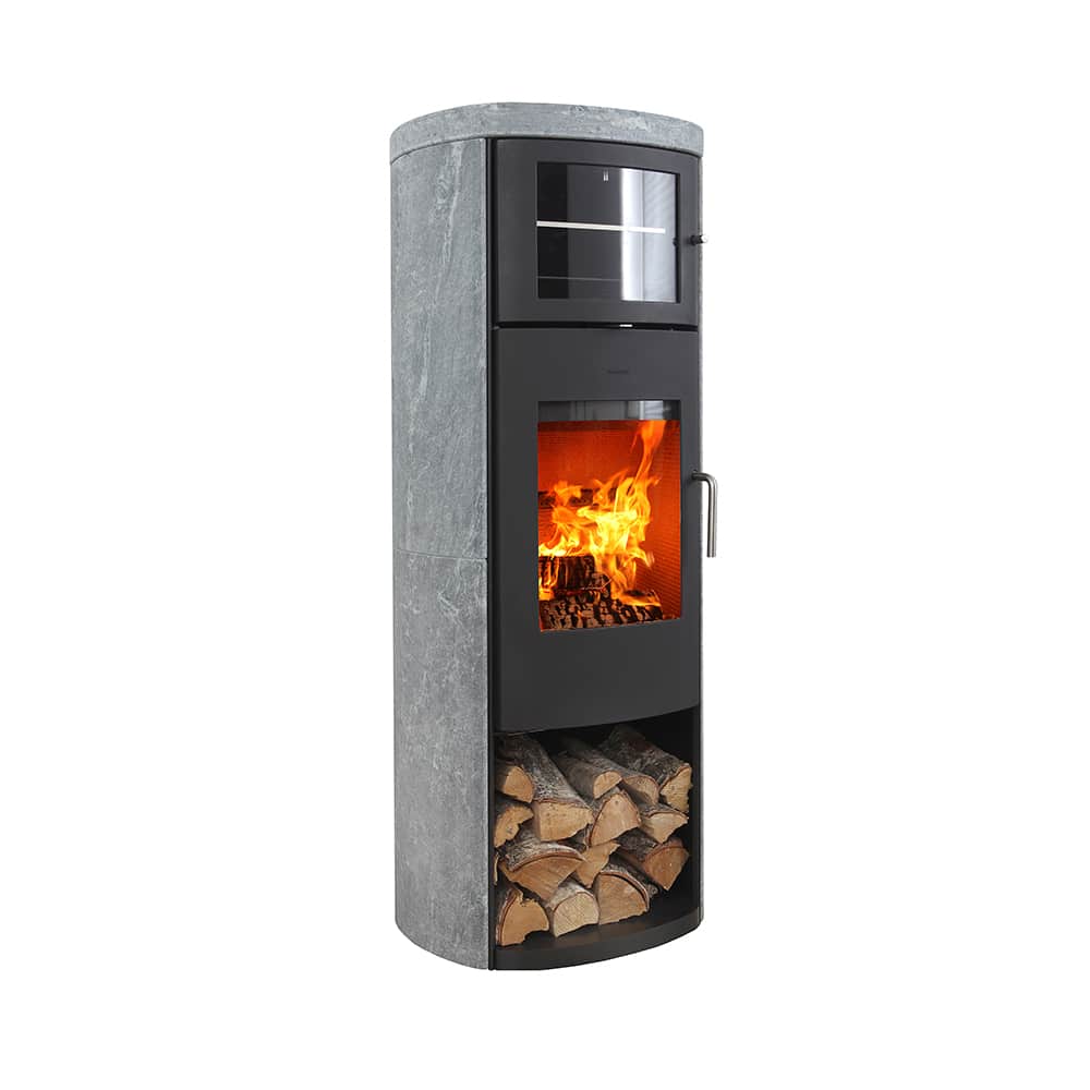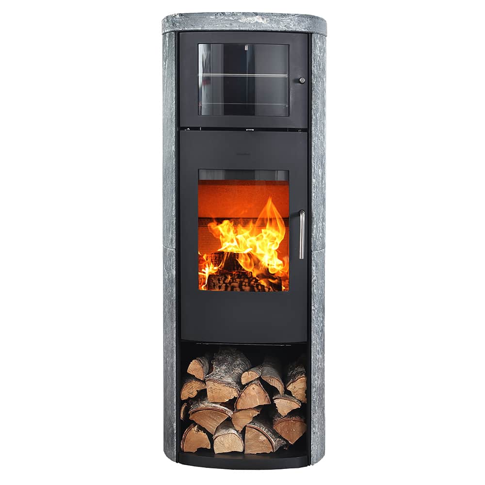 Основной особенностью данной модели печи является облицовка из природного материала талькомагнезита, природного материала с уникальными тепло накопительными характеристиками. Печь в талькомагнезите накапливает и затем долго отдает мягкое комфортное тепло в отапливаемое помещение.