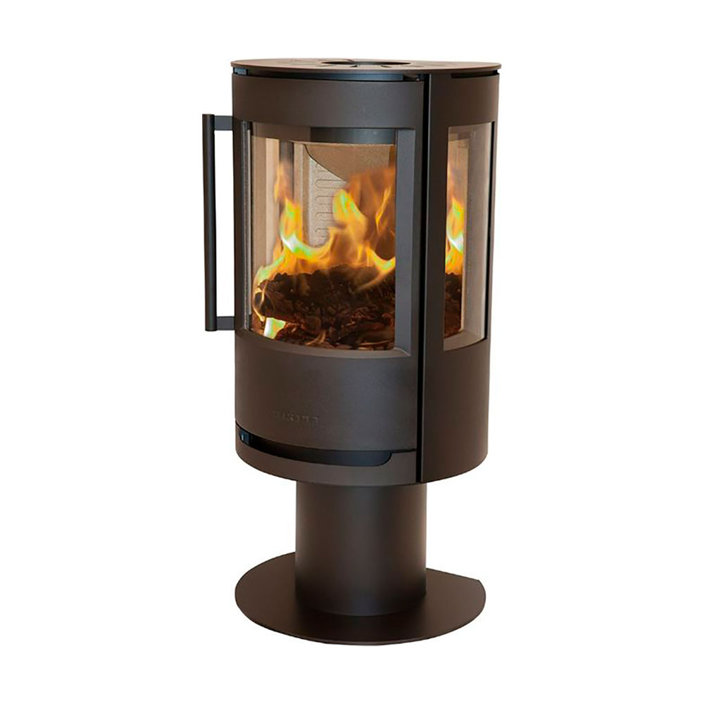 Печь-камин WIKING Luma 1 на пьедестале с боковыми стеклами, с автоматикой - WIKING® Automatic™ -автоматическая регулировка горения, в черном цвете, тепловая мощность 7 кВт, отапливает помещения дома объемом до 90 м3.