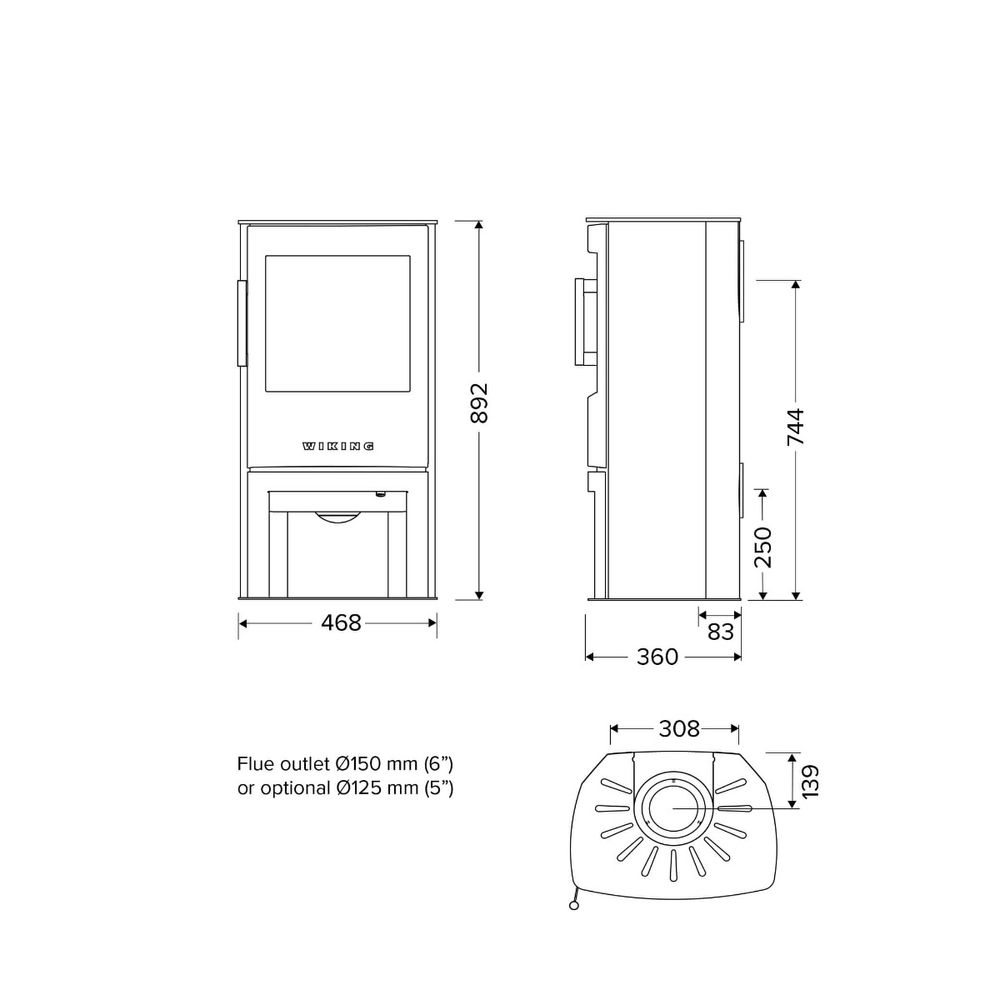 Печь-камин WIKING Mini 4 на открытой базе базе с дровником, с автоматикой - WIKING® Automatic™ -автоматическая регулировка горения, в черном цвете, тепловая мощность 4.5 кВт, рассчитана на отопление дома объемом до 85 м3.
