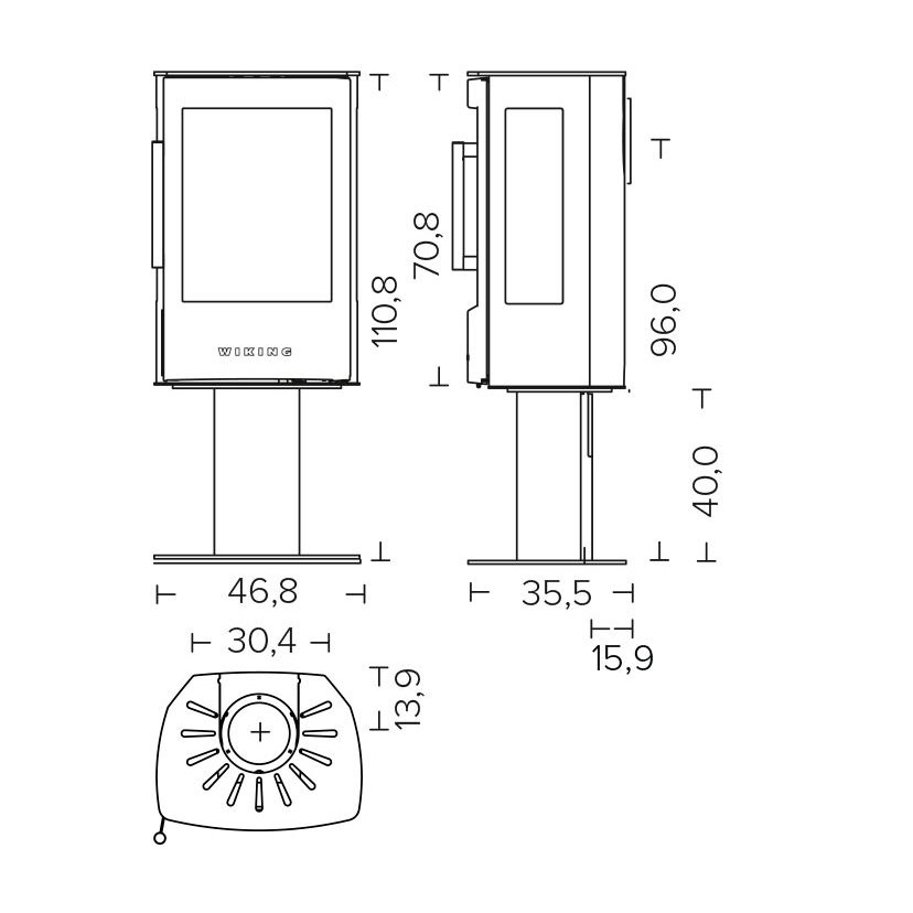 Пьедестал приподнимает печь и придает ей легкий вид. Слегка скошенный сзади ВИКИНГ Миро одинаково хорошо подходит как для ровной стены, так и для угла.