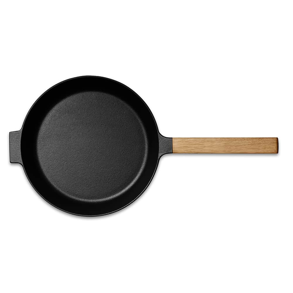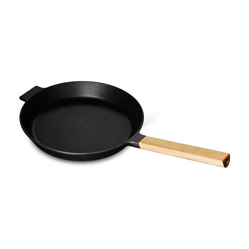 Чугунная сковорода диаметром 28 см, с деревянной ручкой из дуба, производство Morso – Дания.