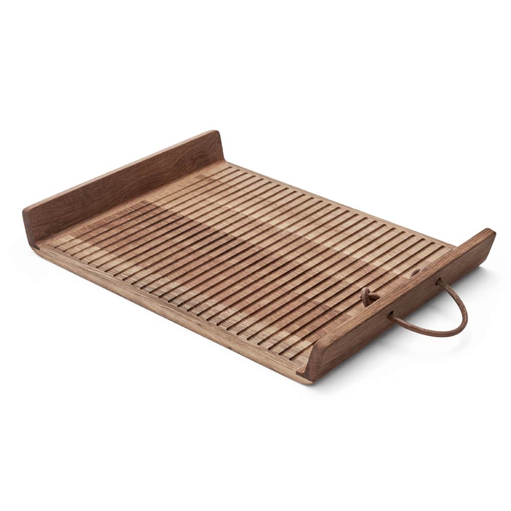 Деревянный поднос Morso FLOW Bakke- 36 х 48 см, изготовлен из прочного дуба, имеет удобную ручку, выполненную из кожи.