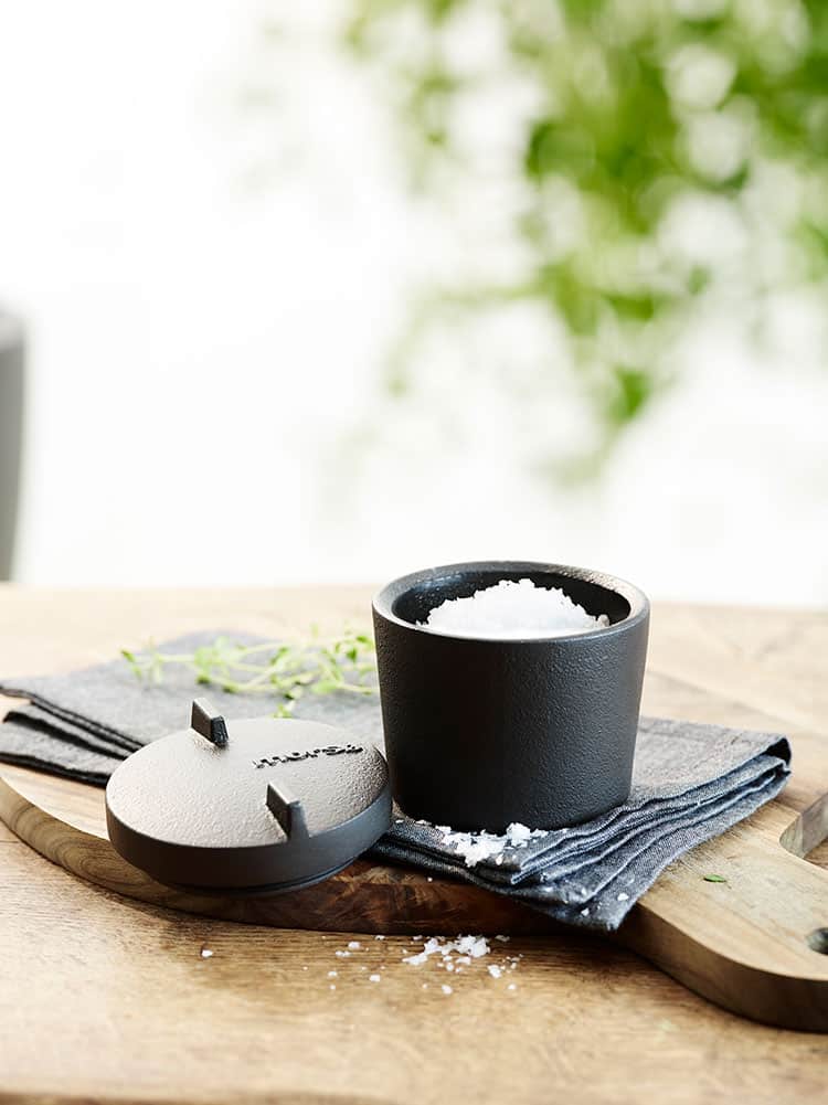 Герметичная, изготовленная из чугуна емкость Morso Salt '14 для хранения соли. Идеально подходит как для домашней, так и для уличной кухни. Красивый, черный чугунный в традициях Morso дизайн солонки - отличное решение для хранения соли и специй.