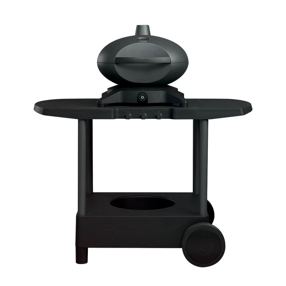 Morsø Tavolo - стол для размещения уличных печей грилей на газе моделей Forno Gas. Tavolo - это мобильный уличный стол, подходящий для всех размеров гриля серии Forno газ. Стол из черного пластика со стальными ножками, которые покрытых прочной антикоррозийной черной краской. Две ножки столу были оснащены колесами, для удобной транспортировки по территории сада. Под столом есть место для размещения газового баллона. Передняя часть стола оснащена приспособлением для установки печи - гриль. Газовый гриль легко и прочно крепится на верхней плите стола.